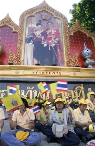 中新網(wǎng)12月5日電 綜合報(bào)道,12月5日是泰國國王普密蓬的80歲壽辰,泰國各界舉行慶典隆重紀(jì)念。數(shù)萬泰國民眾參加了當(dāng)天的慶;顒(dòng),普密蓬和王后接受民眾的歡呼致意。