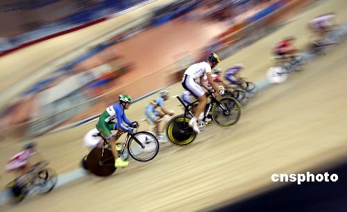 十二月七日,“好運北京”2007-2008國際自盟場地自行車世界杯賽在北京老山自行車館舉行,在男子記分賽決賽中各國選手奮勇爭先。該項目比賽勝利者是整場比賽獲得分?jǐn)?shù)最多的選手,而不是最先沖過終點的選手。男子記分賽是北京2008奧運會場地自行車比賽項目之一,這次比賽則是奧運資格賽之一。本次世界杯共設(shè)置了男子九個小項、女子八個小項,共吸引了四十四個國家和地區(qū)的六十九隊伍。