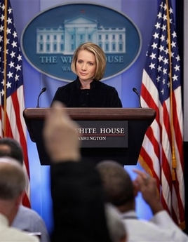 中新網(wǎng)12月10日電 美國白宮女發(fā)言人佩里諾一頭金發(fā),獨具個人魅力,對總統(tǒng)上司布什忠心耿耿,還能如連珠炮般輕松應(yīng)付記者追問,更令人感興趣的是,雖然她才35歲,卻已作了“祖母”。