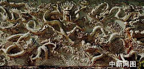 百龍壁:龍是中華民族的象征,是一種圖騰信仰。為什么在此塑108條龍呢?唐武德三年(庚辰),李世民與劉武周在綿山下雀鼠谷大戰(zhàn)受挫.此時,突然天上金鼓轟鳴,隨著從唐軍后面殺出108條白衣白甲的好漢.他們個個勇猛無比.經過一陣廝殺擊敗了劉軍.化為108條龍飛向綿山.后李世民得知是雷神普化天尊相助,便在這里塑了百龍壁。
