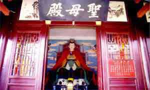 媽祖殿:媽祖是一位海神,保佑船家以及海上的平安.媽祖在我國南方沿海及東南亞、日本、朝鮮一帶極受崇拜。那么為什么要在綿山修媽祖殿呢?明清時期著名皇商介休范家,由于常有海上貿(mào)易,是舉世聞名的船幫。有一次,他們又有出海業(yè)務(wù),船隊在大海中飄泊已有半月。此時忽然狂風(fēng)驟起,烏云翻滾,四周一片漆黑,并發(fā)生了海嘯,眼看就要人仰船翻。船上的人驚慌失措,心中默念海神,希望得到救助。就在此危難時刻,突然從海中緩緩升起一位站在白蓮臺上的朱衣女子。她往海中扔了顆定風(fēng)珠,風(fēng)漸漸小了,天也亮了,一切又平靜下來,好象什么也沒發(fā)生過。當(dāng)人們回過神來,再看這位朱衣女子時,已經(jīng)騰空而去。人們頓時明白這是海神媽祖娘娘顯靈救了他們。此次出海他們滿載而歸;氐浇樾莺,為了感謝媽祖娘娘的救命之恩,在綿山建廟供奉媽祖。媽祖為閩南方言,又稱“天上圣母”,“天后娘娘”。她能預(yù)言禍福,善于治病救人。農(nóng)歷三月初三和九月九日是媽祖的生日和升天日。媽祖左側(cè)為吳天醫(yī),醫(yī)術(shù)高超,救人無數(shù);右側(cè)為順天圣母,能除蛇妖,催生助產(chǎn),是保護(hù)婦女、兒童之神。