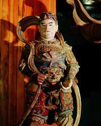 救苦天尊殿:三國(guó)時(shí),群雄逐鹿,連年混戰(zhàn),原始鬼魂也乘機(jī)出沒人間騷擾百姓。天尊得知鬼魂作怪,便將手中拂塵一揮,使鬼魂消散。百姓抬頭一望,只見一九頭青獅上馱著救苦天尊,再看一位戴官帽的神仙帶領(lǐng)十八神將收了鬼魂。原來是太一救苦天尊領(lǐng)城隍及十八陰司傾城出動(dòng)。后人便自發(fā)捐資修建了天尊殿。自那以后,就有了城隍三出巡,治理鬼魂,使百姓安寧的說法。