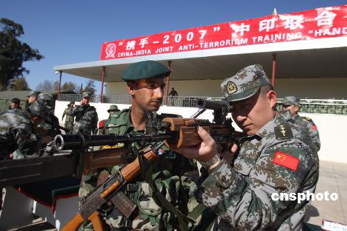 “攜手-二00七”中印陸軍聯(lián)合反恐訓練開訓儀式21日上午在中國昆明舉行。中新社發(fā) 張雷 攝