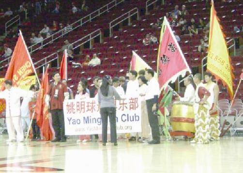 6)中國功夫走進火箭隊賽場,太極少林和秧歌為姚明助威----12月31日晚,NBA火箭隊舉行2007年最后一場比賽開始前,由休斯頓姚明球迷俱樂部等單位組織的中國功夫表演隊伍大張旗鼓地出現(xiàn)在豐田中心的賽場上,具有濃郁中華民族文化特色的太極、少林和秧歌到這里為火箭姚明助威來了。由黃曉明,程進才,釋行浩和喬鳳祥等率領(lǐng)的太極,少林和秧歌隊伍在豐田中心向美國主流社會大展中華文化之精粹。