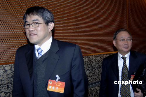 香港已故愛國人士霍英東三子霍震宇(左)作為新增補(bǔ)委員步入會場。