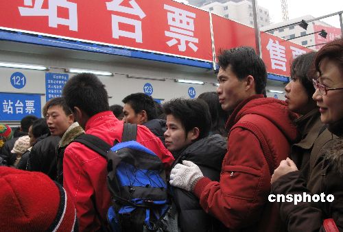 2008年1月19日周六,離春節(jié)還有十余天,大批在京就讀的大學(xué)生、打工者,在春運(yùn)高峰到來前先期買列車票、站臺(tái)票回家鄉(xiāng)過春節(jié)。中新社發(fā) 鄒憲 攝