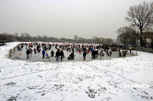 1月20日,北京周末休息的人們走出戶外享受冬日陽光,什剎海冰場上游人如織。中新社發(fā) 魯谷 攝