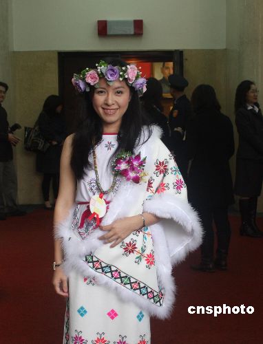 為吸引記者,一些“立委”的著裝花樣翻新。圖為一位“立委”頭戴花環(huán)前來報(bào)到。