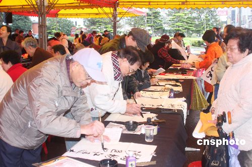 臺(tái)灣一年一度的新年開筆大會(huì),2月3日在臺(tái)灣領(lǐng)導(dǎo)人辦公室前廣場舉行。報(bào)名參加書法揮毫者達(dá)三千多人。中新社發(fā) 耿軍 攝