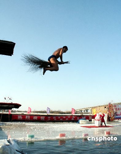 趣圖:哈爾濱冬泳表演花樣翻新