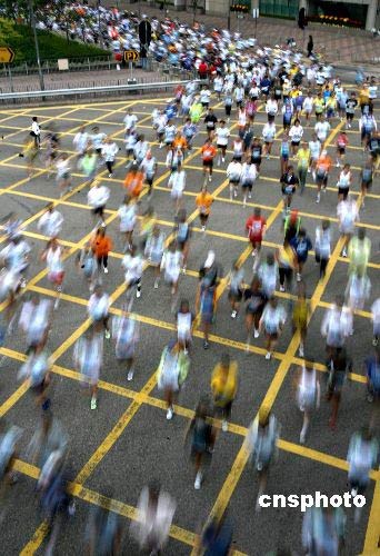 二月十七日,香港名氣最大的長(zhǎng)跑賽事——渣打馬拉松賽開(kāi)賽,約有超過(guò)四點(diǎn)九萬(wàn)人參賽,創(chuàng)歷史新高。特區(qū)行政長(zhǎng)官曾蔭權(quán)到尖沙咀彌敦道起步點(diǎn),主持馬拉松開(kāi)跑儀式。