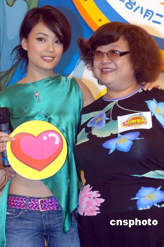 歌星容祖兒2005年7月21日在香港出席無(wú)線(xiàn)電視《兒歌金曲頒獎(jiǎng)典禮2005》記者會(huì),并與擔(dān)任頒獎(jiǎng)典禮大會(huì)司儀的沈殿霞會(huì)上合影。中新社發(fā) 鄧慶樂(lè) 攝