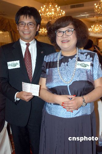 2005年,“肥姐”沈殿霞代表朋友將一張二十萬(wàn)元支票向東華三院捐贈(zèng),東華三院主席王定一親手接收。中新社發(fā) 鄧慶樂(lè) 攝