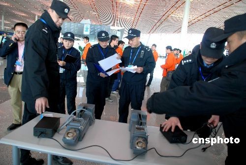 2月23日,北京首都機場T3航站樓順利完成了啟動前的最后一次綜合演練。北航、聯(lián)大、物資等高校的大學生志愿者和機場工作人員參加了此次演練。此次演練內容主要測試的是T3航站樓正常的進、出港旅客流程,中轉旅客流程,國際航班國內段,涉及違禁品、危險品等問題行李的處置及要客警衛(wèi)保障工作測試。中新社發(fā) 楊慧峰 攝