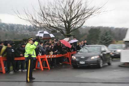 加拿大及來自香港記者都在想方設(shè)法尋找警方保安的漏洞,希望接近肥肥下葬的墓地,紛紛繞著方圓幾公里的墓園轉(zhuǎn)圈。不過,警方似乎就有準(zhǔn)備,在所有有機(jī)會進(jìn)入墓園出入口都派多人把守,另外,在一些有可能拍攝到下葬地點(diǎn),甚至送殯隊(duì)伍經(jīng)過路線的墓園邊,也派駐大批警員。幾乎是三步一崗、五步一哨。連記者接近墓園邊界的鐵絲網(wǎng),也被警員阻止。