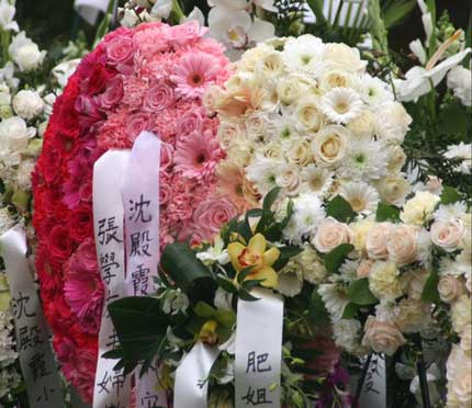 此時,墓地上只有肥肥的好友陳淑芬和其兒子守候。肥肥的墓穴上面鋪上了新草皮,上面釘了一個小牌子,四周是白色為主的花圈,顯得莊嚴圣潔。送花圈還包括徐小鳳、張學(xué)友等藝人。記者 黃運榮 金雷 攝影
