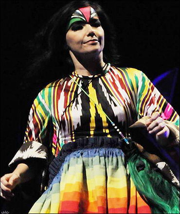 我一直懷疑她是中國的孩子,只是長得不好看,被上帝貶謫到冰島而已。但她的確和中國有著許多不解之緣。唐裝、京劇、琵琶、二胡都是她的最愛,就連和服、高麗的發(fā)型也都是中國制作,難怪她在演出時(shí)連“謝謝”都說得那么地道。
