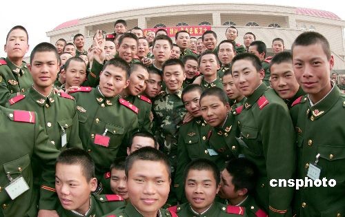 3月21日,《士兵突擊》中扮演許三多的新星王寶強,應邀來到武警河北總隊邢臺市支隊新訓大隊,與新兵面對面交談,共話軍旅人生。中新社發(fā) 余洪恩 攝