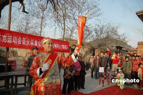 圖:山東農(nóng)民模擬奧運圣火采集過程(2)