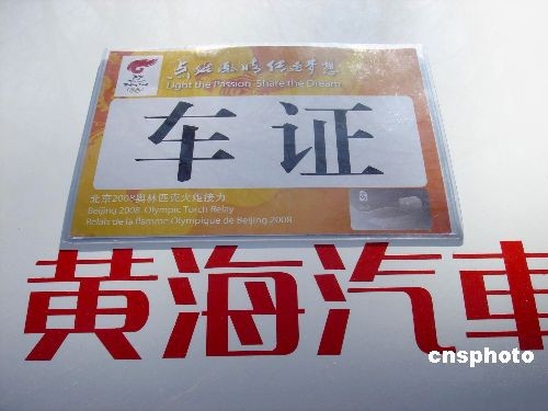 點(diǎn)燃激情傳遞夢(mèng)想--奧運(yùn)圣火傳遞車(chē)證。中新社發(fā) 邵風(fēng)雷 攝