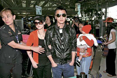 謝霆鋒護(hù)妻兒返港 與柏芝十指緊扣柔情依舊(組圖)(2)