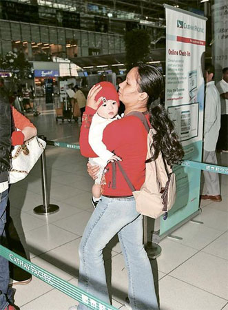 謝霆鋒本月2日跟電影《風(fēng)云II》到泰國(guó)拍攝,張柏芝翌日帶著8個(gè)月大的愛子Lucas與家姐抵曼谷尋夫。霆鋒跟大隊(duì)居住Emporium Suites,他為免影響工作故安排母子住四季酒店。隨著柏芝與Lucas的行蹤曝光,吸引更多香港傳媒追訪,他們亦因此變得低調(diào)。有報(bào)道指柏芝“失!睂し蛄铞h抗拒,加上他們住不同酒店、又不一起吃飯等也引起揣測(cè)。不過(guò),昨日霆鋒在記者面前的愛妻表現(xiàn),以實(shí)際行動(dòng)粉碎婚變傳言。