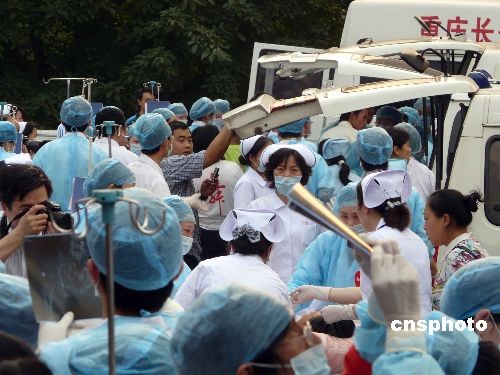 5月19日下午五點半多,四川汶川地震災區(qū)的一批重傷員抵達重慶,重醫(yī)附一院的醫(yī)生護士象解放軍野戰(zhàn)醫(yī)院搶救傷員一樣投入搶救,猶如前方的戰(zhàn)場。