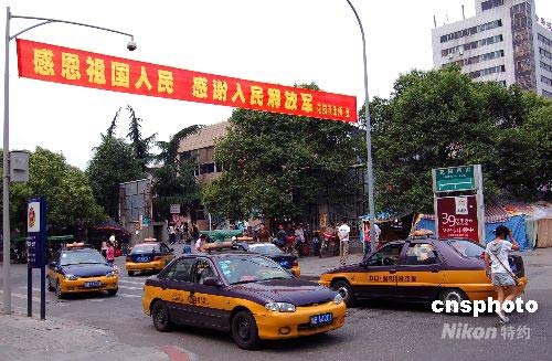 5月26日,四川地震災(zāi)區(qū)綿陽街頭打出“感恩祖國(guó)人民,感謝人民解放軍”的橫幅。四川汶川8級(jí)大地震發(fā)生后,中國(guó)各地發(fā)揚(yáng)“一方有難 八方支援”的精神,以捐款捐物、救治傷員、對(duì)口支援等形式全力支持災(zāi)區(qū)抗震救災(zāi),約有10萬余名軍隊(duì)人員參與到此次救援抗災(zāi)中。中新社發(fā) 劉萬強(qiáng) 攝