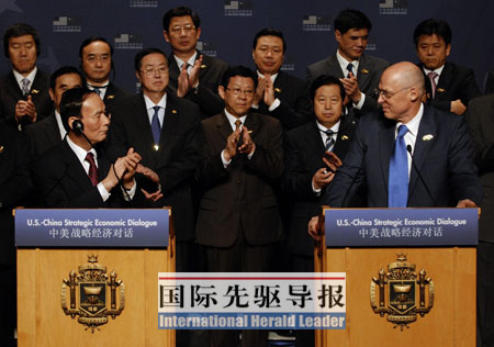 當(dāng)王岐山帶領(lǐng)10多位部長(zhǎng)和副部長(zhǎng)級(jí)官員登上主席臺(tái)時(shí),全場(chǎng)響起熱烈掌聲,鼓掌者包括來自美國(guó)總統(tǒng)特別代表、財(cái)政部長(zhǎng)保爾森以及其他七八位美國(guó)部長(zhǎng)級(jí)官員。保爾森在致辭中特別提到,這是他和他的內(nèi)閣同事們首次與中國(guó)政府新“經(jīng)濟(jì)團(tuán)隊(duì)”集體會(huì)面,他期待著美中通過戰(zhàn)略經(jīng)濟(jì)對(duì)話這個(gè)平臺(tái)共同解決面臨的問題。