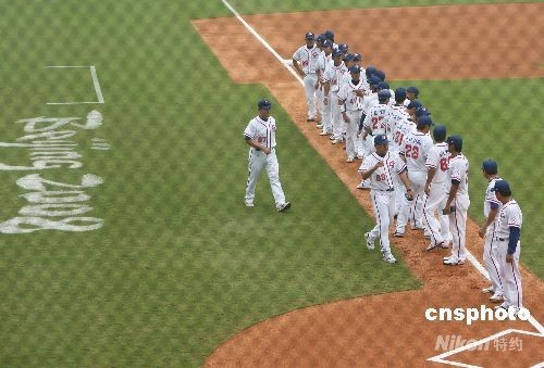 8月13日,北京奧運(yùn)會(huì)棒球比賽開賽,中華臺(tái)北隊(duì)在揭幕戰(zhàn)中以5:0完勝荷蘭隊(duì)。中新社發(fā) 武仲林 攝