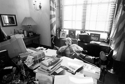當(dāng)這位亞利桑那州參議員1995年搬進參議院拉塞爾辦公樓時,麥凱恩的辦公室是由夫人辛迪負責(zé)布置的。她讓人抬進了粗糙的木制家具,西南部風(fēng)格的藝術(shù)品,一把搖椅,甚至還包括幾盞黃銅做的枝形吊燈。