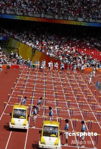 圖:奧運(yùn)會(huì)田徑110米欄首輪比賽開(kāi)始(3)