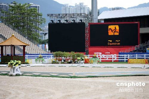 北京2008年殘奧馬術比賽將在九月七日至十一日在香港舉行。在五天的比賽中,將有七十三名運動員參賽,殘奧馬術選手村和比賽場地基本沿用奧運馬術的措施,但為了保障運動員們的安全,部分場館則做出適當改動。中新社發(fā) 洪少葵 攝