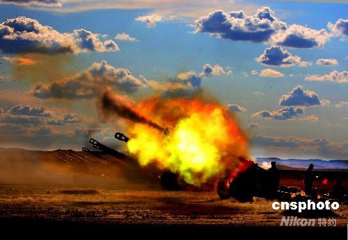中國人民解放軍濟南軍區(qū)參加“礪兵--2008”演練的部隊,日前已經(jīng)集結(jié)完畢,部隊全部進入臨戰(zhàn)狀態(tài)。9月12日該軍區(qū)炮兵旅進行臨戰(zhàn)前的實彈訓(xùn)練。中新社發(fā) 宋吉河 攝