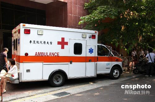 圖為19日早停放在臺北地方法院側(cè)門的臺大醫(yī)院救護車。中新社發(fā) 陳立宇 攝