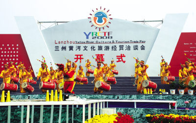 當(dāng)天的開(kāi)幕式現(xiàn)場(chǎng)洋溢著熱烈、喜慶的氛圍,飛天、羊皮筏子、水車(chē)、秦腔這些代表著黃河文化的元素傳達(dá)著本屆盛會(huì)的內(nèi)涵,噴泉、禮花、極具現(xiàn)代感的舞臺(tái)設(shè)計(jì)表達(dá)著蘭州人民繼續(xù)解放思想,深化改革開(kāi)放,努力實(shí)現(xiàn)蘭州經(jīng)濟(jì)又好又快發(fā)展的信心和決心。