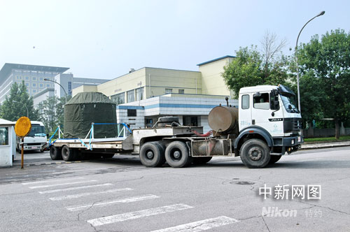 中國神舟七號載人航天飛船發(fā)射在即。圖為神舟七號飛船轉(zhuǎn)運(資料圖片)。袁明月 攝