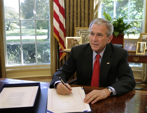 布什簽署救市方案。