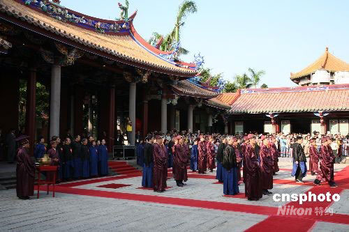圖:十月五日舉行的臺北祭孔大典上“主獻官”著長袍馬褂