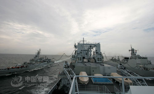 10月9日,南海艦隊某作戰(zhàn)支援艦支隊同某驅(qū)逐艦支隊數(shù)艘驅(qū)護艦,在二級海況下成功組織了高難度的“兩橫一縱”海上補給訓練。他們克服風大流急的影響,經(jīng)過多次協(xié)同演練,航行中的補給對接時間比最初縮短了10多分鐘,海上應急支援能力得到提高。 中國軍網(wǎng)發(fā) 繞燕文攝