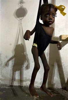 今年,由于風(fēng)暴襲擊,海地60%的糧食收成被橫掃一空。在某些地區(qū),無國界醫(yī)生組織發(fā)現(xiàn),營養(yǎng)不良的比例高達5%,其中,兒童更是受害最大的人群。據(jù)美聯(lián)社報道,無國界醫(yī)生組織比利時分部的負責(zé)人馬克斯.科斯奇表示,除了這26名孩子,還有65個嚴重營養(yǎng)不良的兒童被送到臨時搭建的山區(qū)帳篷診所及太子港等地區(qū)的醫(yī)院接受治療!坝幸粋孩子在治療中死去了”。這些孩子的癥狀包括腸胃萎縮,因營養(yǎng)不良導(dǎo)致色素減少、發(fā)色變淡,有些甚至出現(xiàn)了浮腫,這是因蛋白質(zhì)缺乏引起的功能紊亂癥狀。