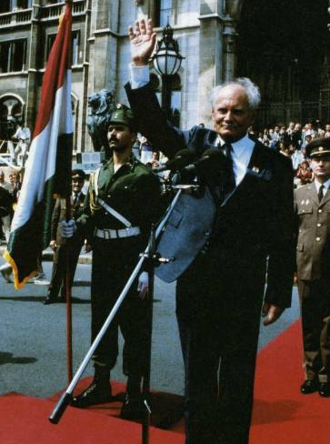 資料照片:1990年8月,根茨·阿爾巴德就任匈牙利共和國(guó)總統(tǒng)。