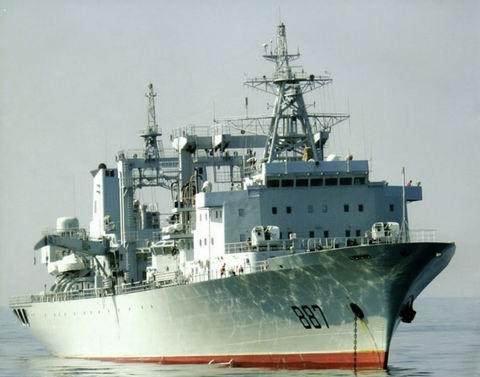 “微山湖”號綜合補(bǔ)給艦(舷號887)是中國自行設(shè)計建造的最大補(bǔ)給艦,排水量接近3萬噸,可同時為兩艘以上艦船補(bǔ)給,2007年曾與“廣州”艦一起出訪歐洲多個國家。