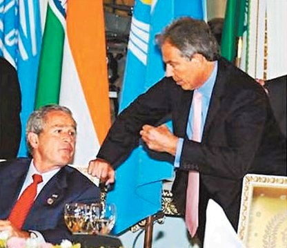 出席八國峰會(huì)時(shí),與英國前首相布萊爾邊吃邊談,不知道桌上的話筒沒關(guān),布什提到真主黨時(shí)候,說了粗話“shit(狗屎)”