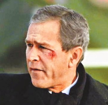 2002年初,布什擦傷面頰,瘀痕相當(dāng)明顯,據(jù)悉他在看電視時吃椒鹽脆餅,給噎住了,短暫失去知覺,跌倒在地弄傷面部