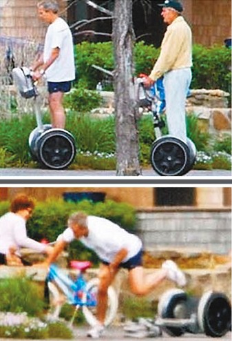 2003年,布什試用“攝位車(chē)”時(shí),狼狽跌下來(lái)