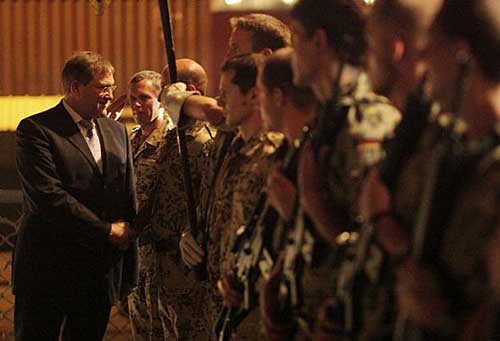 近日,德國(guó)國(guó)防部長(zhǎng)弗朗茨·約瑟夫·容為參加歐盟領(lǐng)導(dǎo)的打擊海盜行動(dòng)的德國(guó)官兵送行,此次行動(dòng)德國(guó)派出了卡爾斯魯赫(Karlsruhe)號(hào)護(hù)衛(wèi)艦參與。