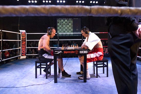 這個(gè)比賽結(jié)合了腦袋和拳頭的較量。比賽規(guī)則很簡(jiǎn)單,先進(jìn)行4分鐘的國(guó)際象棋比賽,然后再進(jìn)行3分鐘的拳擊比賽,象棋和拳擊交替進(jìn)行,11個(gè)回合之后比賽結(jié)束。參賽者是否取勝要看是否能在擂臺(tái)上擊倒對(duì)手并在棋盤(pán)上將死對(duì)手。主辦者希望通過(guò)這個(gè)比賽證明,戰(zhàn)士可以成為智者,智者也可以是戰(zhàn)士。