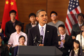 中新社紐約十一月十六日電 美國總統(tǒng)奧巴馬十六日與上海的青年大學(xué)生進(jìn)行了一場約一個(gè)小時(shí)的對話,美國的多家華文報(bào)紙對此都進(jìn)行了大篇幅的重點(diǎn)報(bào)道。