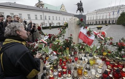 代行總統(tǒng)職權(quán)的波蘭眾議院議長科莫羅夫斯基10日宣布舉行為期一周的“全國哀悼日”,悼念當(dāng)天在飛機(jī)失事中遇難的波蘭總統(tǒng)卡欽斯基及其隨行人員。俄羅斯總統(tǒng)梅德韋杰夫10日也宣布4月12日為俄羅斯的全國哀悼日。